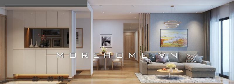 Phòng khách căn hộ chung cư ấm cúng gần gũi với tâm điểm là bộ sofa văng hiện đại sắc kem sáng nhẹ nhàng lại sang trọng với phần khung gỗ óc chó cao cấp.