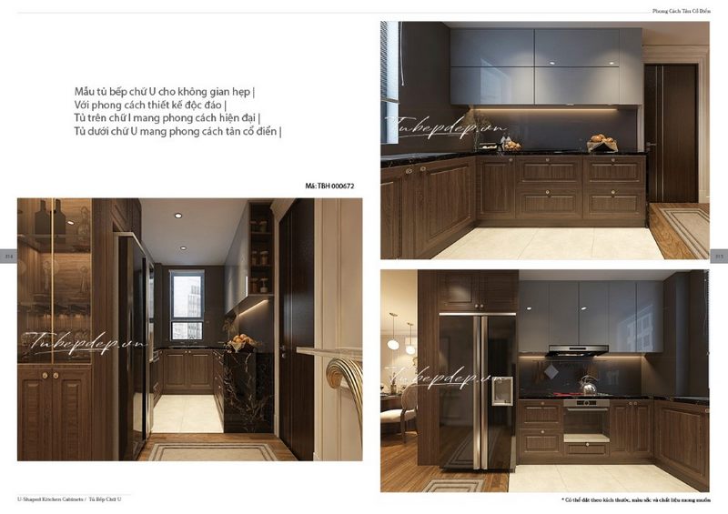 Phong cách tân cổ điển được thiết kế tối giản các chi tiết trang trí, sử dụng 2 màu sắc tủ trên dưới trắng - nâu lạ mắt, sáng tạo.