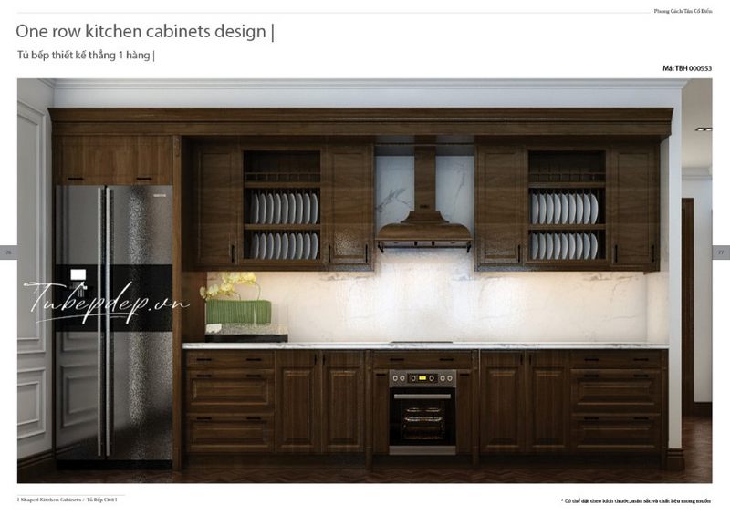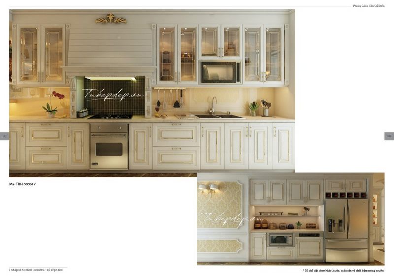Giới thiệu mẫu tủ bếp chữ i được thiết kế theo phong cách tân cổ điển có sự kết hợp sáng tạo kính và gỗ thời thượng, tiện nghi hơn